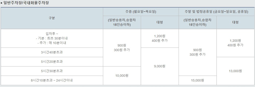- 주말: 단기 주차장 요금은 1만 5천 원 부과